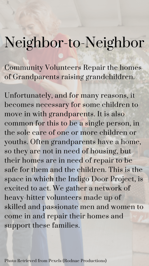 We all believe kids need home & community to thrive. Indigo Door Project, Inc. is a 501c3 nonprofit organization whose mission is to eliminate child homelessness in Oklahoma’s metro single-parent families. To do this we thoughtfully refurbish affordable housing for these families & connect communities through mentorship & events creating foundations for self-sufficiency. Join us & help end child homelessness by donating homes, funds, and or expertise.